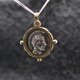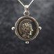 一款精致细腻、仿古风格的特特拉德拉克马(tetradrachm)钱币坠饰。此钱币为真实钱币的复刻版(如您照片所示),边框亦带有传统的仿古饰纹。坠饰为双面设计。您可于三种选项中选择:1. 全银坠饰(边框与钱币皆为银制) 2. 银币与黄铜边框 3. 黄铜币与银边框