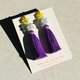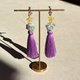 感谢您的浏览。 本店所有饰品皆为独一无二的手工制品。 请尽情享受手作饰品独特的魅力。 以瑞香花 (daphne) 为设计灵感。 淡蓝色珠饰与鲜艳的紫色流苏随之摇曳,为耳畔增添华丽与娇媚。 金属配件:若无特别指定,将附上“螺旋式耳夹 (玫瑰金)”。 金属部分为无镍材质 (部分商品除外),但无法保证对所有配戴者皆无过敏反应。 因使用精致零件,请避免过度施力,以免损坏。请温柔对待。 亦提供付费礼品包装服务 (NT$1000)。