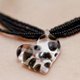 以黑白圆点点缀的玻璃爱心。 简约的单色调,呈现沉静而时髦的风格。 颈部周围采用五圈黑色波西米亚风格串珠,增添些许份量感。 爱心部分已固定,不易滑动。 项链长度为颈围 38 厘米,另有 5 厘米延长链。 由于为手工制作, 每个爱心的形状及圆点的排列可能略有不同,敬请见谅。