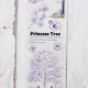 这次在第三款“会开花的树”系列中,以蓝紫色系的花树为主角,将紫藤、蓝花楹、泡桐等树种,用水彩笔触绘入柔和透明PET胶带中。