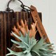 - 孢子叶与营养叶皆以植鞣皮革手染制成,模拟侏儒爪哇鹿角蕨的细致分叉,背板碳化松木尺寸:H11x9cm