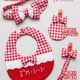 Gugu 手创 - 红格纹 蕾丝圆兜 / 发带 / 平安福袋 / 奶嘴链 / 弥月礼盒