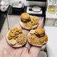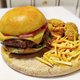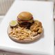 Juicy burger with cheese, tomatoes and lettuce, French fries and chicken nuggets on one board. This is a realistic miniature suitable for dollhouse or collections. The whole composition is made of polymer clay, the board is made of wood.