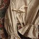 棉麻本身具有天然的质感,柔软却不失挺度,既能保证穿着的舒适度,又能让服装保持良好的结构感。这种材质在自然的光线下常能散发出柔和的光泽感,与围裹式、澎袖的设计相得益彰。