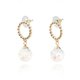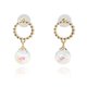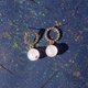 It's a donut-shaped metal and shiny white snowball drop earrings.