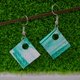 饰品名称:青秀绿与白色双面细胞感方形耳环
