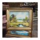 台湾老件.早期金色木头框.手绘小油画.非印刷品.摆件.风景画.小画框.轻质木头小相框.单入售#收藏品