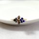 这是一款结合了黑钻、黑尖晶石、青金石和烟水晶的线戒。我们将细小的天然石巧妙地组合在一起,创造出闪耀夺目的设计。