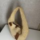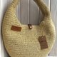 手工钩编扭曲拉菲草购物袋。这款包包颜色自然,适合搭配任何服装。