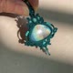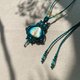 这颗拉长石折射出梦幻的光晕,像极了夜空中流转的极光,在每个角度,闪耀着难以言喻的神秘色彩。深绿的线在光下闪烁,如同极光倒影湖面般,一笔一画勾勒出灵魂的轨迹。