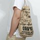尺寸上尽量保留咖啡豆袋的图案但不过大,版型特地作得比较窄深,即使是超大容量的冰霸杯跟雨伞也放得下。固定在两侧的单肩带设计,背起来贴身舒适,也可以让图案完全呈现在袋身,非常吸睛。