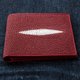 为你的日常随身物增添正红色彩亮!这款鵾鱼皮银包手工制作,表面自然珍珠粒粒出现独特外观。内部采用高档牛皮衬补,视感柔软而耐用。