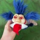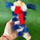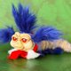 蓝虫埃洛娃娃是用毛绒缝制的,里面充满了合成填充物。眼睛是玻璃做的。脸部和脚部由聚合物黏土制成,并涂有压克力涂料。