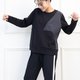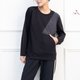 异材质拼接下摆不规则剪裁长袖上衣 / 黑色 透气舒适,秋冬皆宜