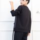 异材质拼接下摆不规则剪裁长袖上衣 黑色