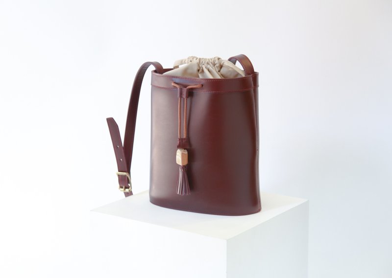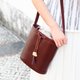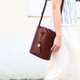 棕红色水桶袋带有两个不同颜色束绳袋,方便搭配