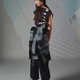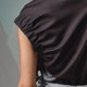 使用LINE聊天室背景为印花基底,领口做一字领露肩设计,在军装风格中展现出女性的优雅柔美,整体为短版无袖T-Shirt,脇边袖圈藏有织带抽绳设计,可调节衣服长度与袖笼大小。