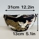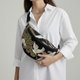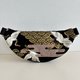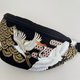 这款斜背包采用棉质布料制作,以沉稳的黑色为基底,描绘着优雅飞舞的鹤与华丽的金色彩浪图纹。