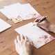 点缀着清爽闪耀的向日葵,给人明亮印象的信笺。 采用质感细腻、触感柔滑的高级纸张,散发沉稳且温柔的气息。 ▼商品内容 ・花卉信笺 共6张 / 附横线衬纸 1张 种类:向日葵 商品尺寸:148×210mm (A5尺寸) ・કવર 3张 / 品牌Logo封口贴纸 3张 【关于设计】 由专业印刷厂商精心制作。 商品型号:FB-003A