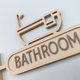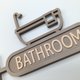 这是一款可安装于墙面的悬挂式浴室标示牌,带有文字与边框。