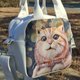 这款小方包的图样,源自于我的原创立体肌理画作品。原画使用了轻黏土与压克力媒材,层层堆叠出浪浪橘猫在遇见幸福后的圆润与自在。