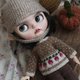 A cozy sweater for Blythe is knitted from 100% merino wool using raglan technique. Fastened with tiny buttons. Decorated with a cute jacquard pattern.