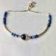 此款手链以青金石为主,加上大量的14k包金隔珠,中央以湖水蓝的蓝磷灰作主珠,整体设计带有古老中东的神秘与华丽感觉。