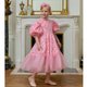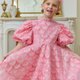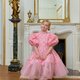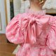 这款仙女风格的洋装,以双色玫瑰织物和亮片珠饰闪耀着光芒,精致的刺绣捕捉了璀璨而梦幻的光泽。采用了带有光泽感的草莓粉色金属薄纱,在光线下熠熠生辉,而伞状的轮廓则营造出优雅的动感。