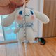 手工编织兔子钥匙圈,蓝白色调,尺寸 15 厘米,超可爱。
