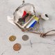 可放入卡片、对折纸币等,也可作为可挂颈的钱包使用。