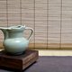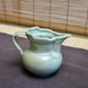 此茶海以僧帽口为形,线条端庄而典雅。圆润饱满的壶身搭配简洁实用的握把,手感稳妥,出水分流顺畅不滴漏。青釉温润透亮,如玉般的光泽中隐约泛出山水的清幽气息。无论日常品饮,或茶席款待,皆能展现含蓄而优雅的韵致。