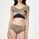 Ayu is one of the most fascinated and attractive young woman. Glam the looks with the metallic grey X Cross Fronted Tops and bottom, she is ready for champagne party cruising along the coastline.
