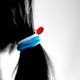白とブルーのゴムがつなぎ合わされたヘアゴム。