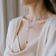 项链由银尾链制成,一端有环,另一端有旋转珠。该珠子是手工制作的,由银锥上的三个甜甜圈形状的银组成,可以自由移动和旋转。珠子形状的灵感来自佛塔(或宝塔),佛塔是东南亚各地佛教寺庙的特色。