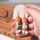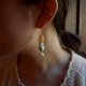 复古"粉橘色闪粉郁金香"搭配上"薄荷绿的南瓜珠",垂坠着两颗小花珠,充满春天的甜蜜与活力感。