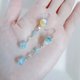 主要采用火抛光捷克珠,颜色酷炫而独特,让人想起水蓝的白色沙滩,较小尺寸的火抛光捷克珠和玻璃珠,以及像苏打水一样起皱的可爱裂纹珠这些耳夹由蓝水滴耳针。