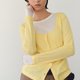 这是一件看似叠穿、实则一体的假两件针织上衣。以温和贴肤的天丝羊毛内层搭配弹性针织外层,带来轻盈却不单薄的穿着体验。经典汤勺领线条柔和、贴合颈部轮廓,可自然衔接项链或围巾等配饰。两种配色风格迥异:黑白简洁克制,黄白轻快明朗,适配多种日常场景。