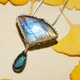 纯手工纯银绕线百叶窗扇形拉长石吊坠