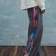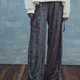 裤头松紧带的绒布宽松休闲长裤,侧边拼接印花布与织带