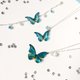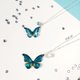 < 手绘黑黄纹蓝色闪蝶闪亮蝴蝶玻璃球棉棉珠颈链 项链 >