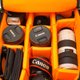 整个包的内衬由Nylex制成,内部有2个长隔断和5个短隔断隔层,可以根据您的任何相机和镜头调整空间。 2条额外的橡皮筋有助于固定设备。 15mm防震加厚车身和车厢;确保相机受到良好的保护。包的拉链是YKK;它比其他一些拉链光滑耐用。它使整个袋子结实。