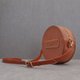 ●缝线笔直一致、孔位精准,圆型侧背包质感佳
