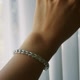 纯银线制作,蛇形手链为金工链的经典款,一个个圈环以特定规律环环相扣,经过编织、焊接、塑形、拉线等工序,机关活动时会像蛇一般地摆动。扣头采用长形方扣头,若有其他扣头款式需求可以再跟设计师讨论。