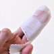 将油脂清洁布卷在手指后,倒入适量清洁剂于指尖上轻轻擦除脏污。