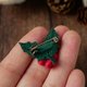 请为您的外套或毛线帽增添一抹蕾丝编织的圣诞冬青胸针,一同享受圣诞佳节。