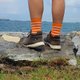 Socks are cotton material with quarter crew sock cutting and comes with a bleak stamp at the bottom.