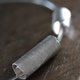The two roll-pieces that the chain carries (they move freely on the chain) were crafted from a silver strip that we textured on surface with natural materials (wooden tree bark, straw, dry teak tree leaves, etc). The silver strip was thinned to roughly around 1 mm thickness by passing it into a rolling mill together with various materials that left the surface textured with beautiful, deeply embossed, natural patterns. Two pieces of silver strip were cut and then simply "rolled" (wrapped to overlap by means of round pliers) into the final shape. The two rolls are of different width (one approx. 16 mm, the other 34 mm) and have uneven (smooth to the touch) edges, so the final result has a very organic feel, that emphasises nicely the rough-looking, irregular natural surface. The clean, precisely fabricated necklace silver chain contrasts nicely with the two heavy, handmade roll-pieces (the weight of the two pieces alone is about 18 g).
