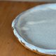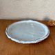 独特风格的陶盘,以无规则造型、白釉泛蓝釉呈现,经过高温烧制,可盛食物,亦可为家居收纳盘或装饰。