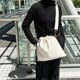 采用触感如羊皮般柔软的合成皮革制成,展现优雅气质的抽绳单肩包。