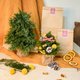 ① 请确认材料有:基底mit不凋雪松圣诞树、5种果实花草们、蝴蝶结,正确无误就动手插上美美的花啦,请参考操作守则做出属于你自己的作品啦!